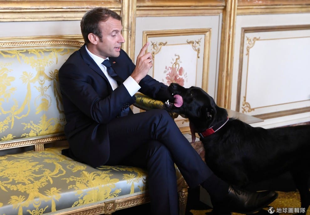 30號這天,法國總統馬克宏(Emmanuel Macron)在總統府艾麗舍宮(Elysee Palace)輕拍第一家犬尼莫(Nemo),看來就像在跟尼莫說教,場面逗趣橫生。他在和德國副總理與外長的會議中稍歇片刻,待會要繼續討論歐盟整合、防衛和移民問題。