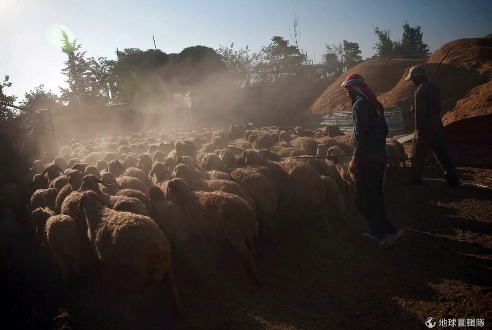 在反政府軍控制的大馬士革杜馬區(Douma),牧羊人拿著長竿在趕羊,為了即將到來的伊斯蘭重要節日宰牲節(Eid al-Adha festival)做好準備。