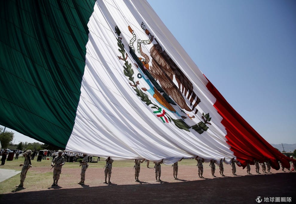 士兵們忙著升起墨西哥的巨幅國旗。本月 16號是墨西哥自西班牙獨立第 207年,相關單位也緊鑼密鼓地張羅起各種活動。