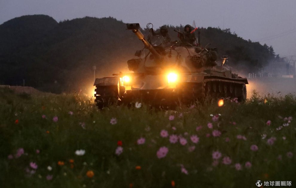 在靠近與北韓交界的白翎島(Baengnyeong),南韓海軍正在進行軍事演習。