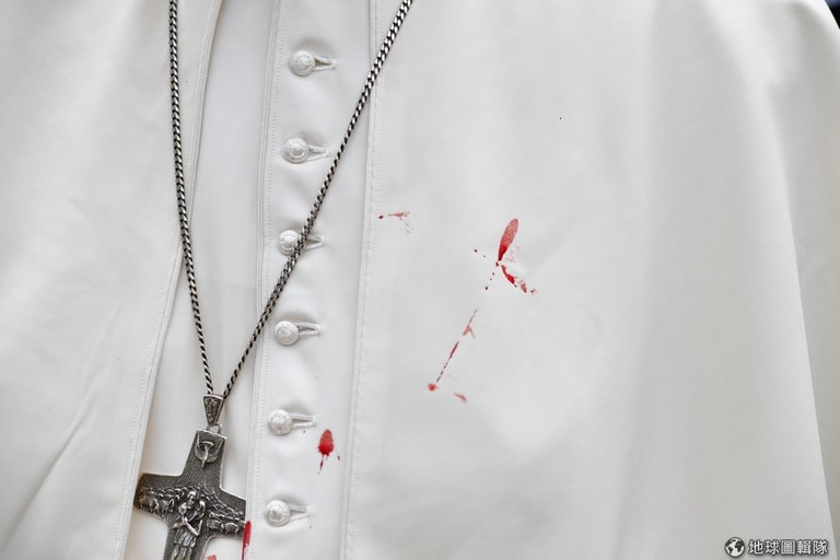羅馬天主教宗方濟各(Pope Francis)一個不小心,站在車上向民眾揮手時左眼撞到了車上的玻璃,鮮血滴到了教宗的白袍,所幸並無大礙,教宗的出訪行程照舊。
