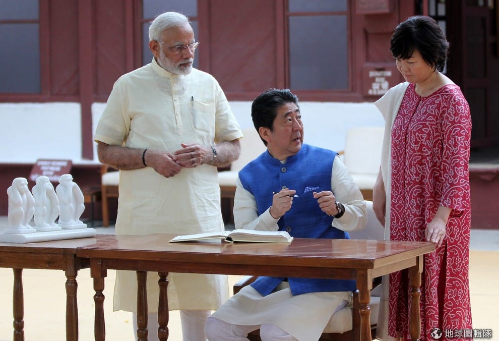 13號這天,日本首相安倍晉三夫婦抵達印度,他們受到莫迪(Narendra Modi)總理的熱烈歡迎,莫迪也帶著安倍夫婦來到艾哈邁達巴德(Ahmedabad)參觀甘地靜修所(Gandhi Ashram),安倍也拿起筆準備在訪客名簿上簽名。