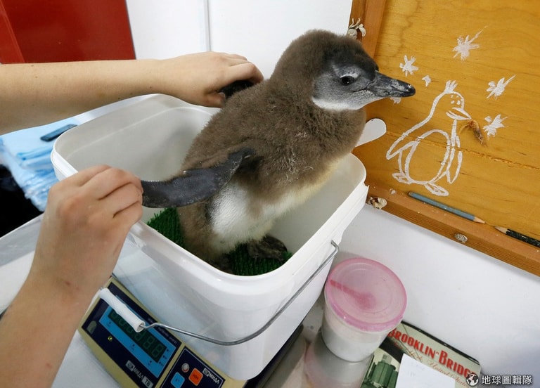 羅伊孚露奇動物園(Royev Ruchey zoo)的管理員澤波史蓋亞(Vlada Zapolskaya)正在替兩個月大的小企鵝秤重。