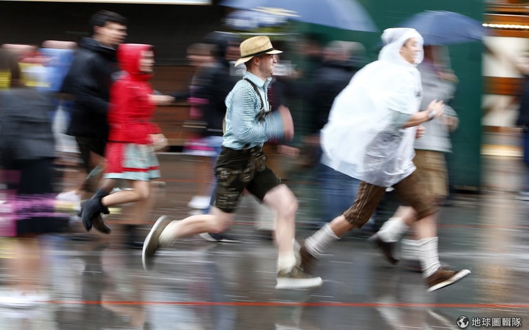 在每年九月底十月初舉辦的慕尼黑啤酒節來臨了,在慶典宣告開始後,人們爭相朝大門的方向跑去,搶著要一嚐啤酒的滋味。