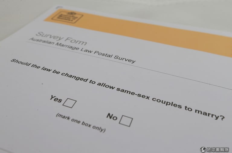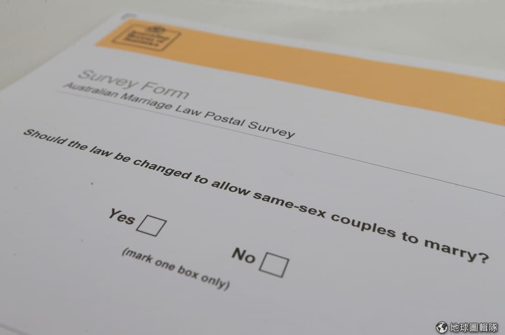 今年 9月,澳洲統計局透過郵寄問卷調查人們是否贊同修法讓同性伴侶結婚,圖即為人們會收到的問卷模樣。