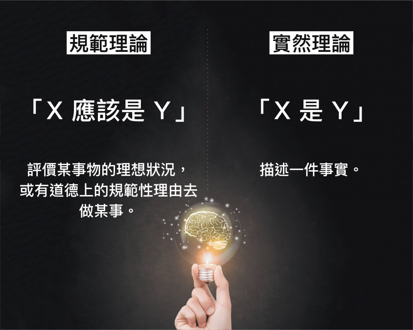 規範理論與實然理論之比較。