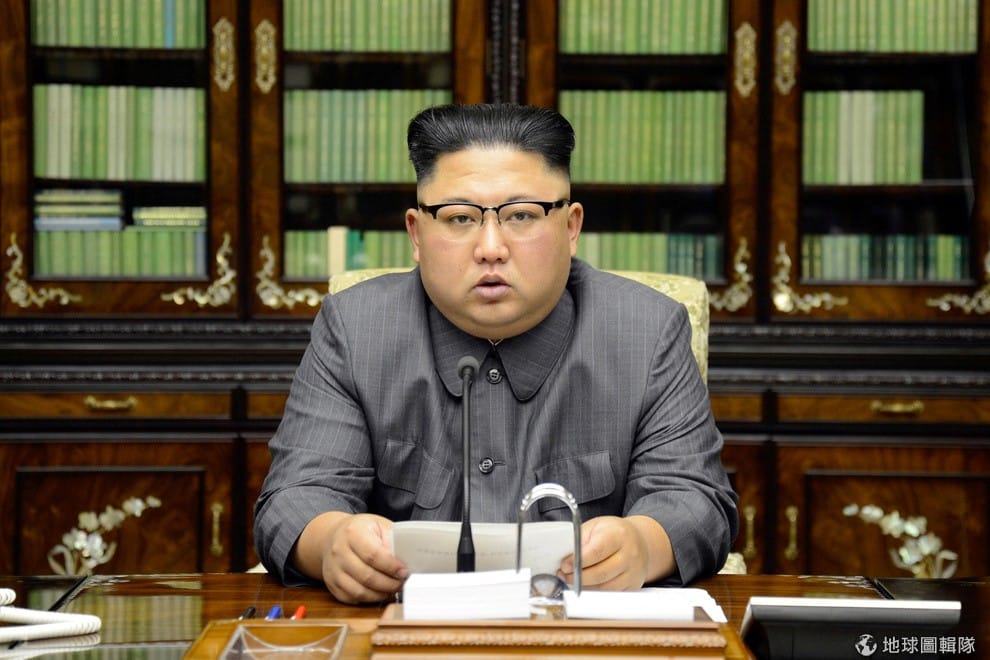 本月 22號,在朝鮮中央通訊社(KCNA)公布的照片中,北韓領導人金正恩神色嚴肅地針對美國總統川普(Donald Trump)在聯合國安理會上的言論進行聲明。