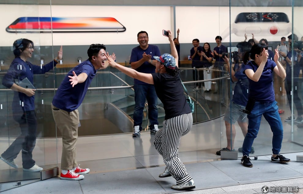 蘋果商店的員工熱情招呼花了大把時間排隊,好搶先買到新款Apple Watch的蘋果迷木村木子(音譯,Shoko Kimura)。這裡是在蘋果位於東京表參道的門市。