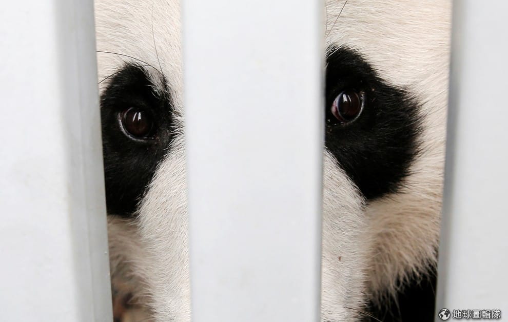 一隻大貓熊轉動著骨碌碌的雙眼往外看,牠剛剛從中國抵達印尼蘇加諾-哈達國際機場(Soekarno Hatta airport),準備完成外交任務待在印尼十年。