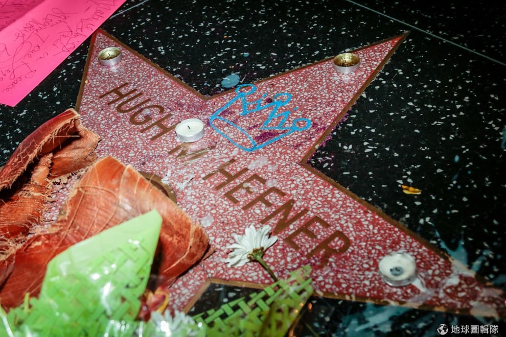 在洛杉磯好萊塢星光大道上,《花花公子》創辦人海夫納(Hugh Hefner)的星星上擺著蠟燭和悼念花束,紀念這位一手打造兔女郎世界的媒體大亨。