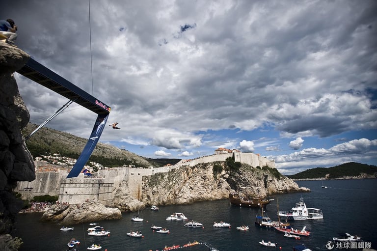照片中是克羅埃西亞境內,當地優美的海岸讓這邊也被選為紅牛跳崖大賽的舉辦國之一。