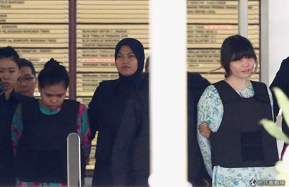 今年25歲的印尼女子席蒂艾沙(Siti Aisyah, 左)與 29歲的越南女子段氏香(Doan Thi Huong, 右)在警方的戒護下步出法庭,她們兩人被懷疑暗殺北韓領導人金正恩同父異母的兄長金正男,然而她們在出庭時堅不認罪,表示以為自己當時是在拍電視節目,並不知道原來自己暗殺了金正男。另一方面,面對外界的質疑,北韓官方一律否認涉案。
