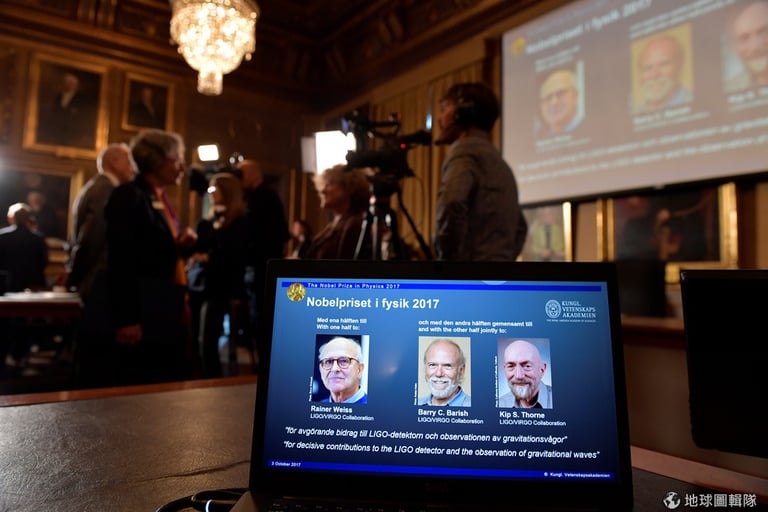 3號這天,2017年諾貝爾物理學獎得主出爐,由美國物理學家魏斯(Rainer Weiss)、索恩(Kip Thorne)和巴里什(Barry Barish)以重力波探測獲得,他們三人帶領雷射干涉重力波天文台(Laser Interferometer Gravitational-Wave Observatory, LIGO)計畫記錄下了重力波,他們將平分 900萬瑞典克朗(折台幣約 3,369萬元)的獎金。但更重要的是,他們將會擁有諾貝爾物理學獎得主的頭銜,而對其他參與LIGO計畫的科學家來說,他們只會成為研究報告中,長達三頁作者名單裡不起眼的一員。