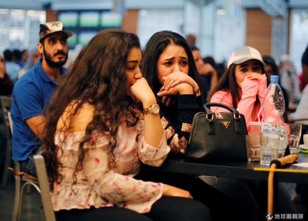 在首都大馬士革的一家咖啡廳,民眾緊張地看著敘利亞對上澳洲的世界盃資格賽,最後由澳洲以 2比 1勝出。