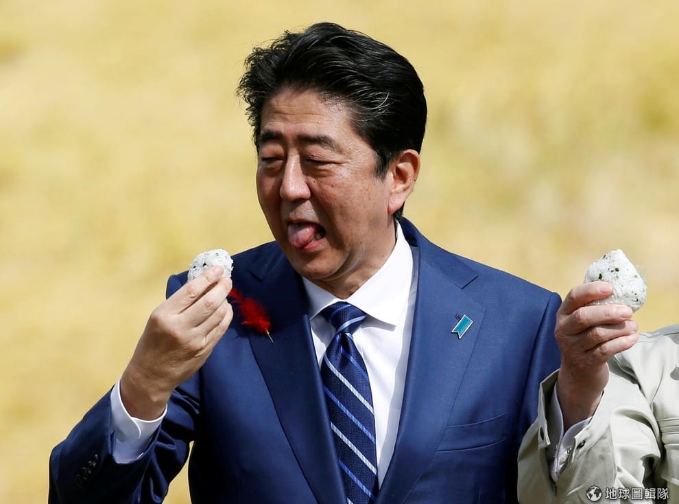 為了替 22日即將舉行的日本眾議院議員總選舉拉票,日本首相兼自由民主黨黨魁的安倍晉三來到福島縣,和當地民眾搏感情吃飯糰。