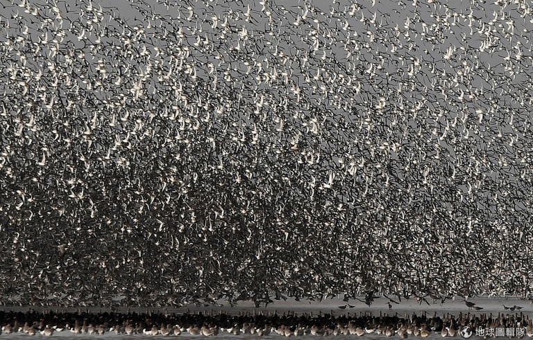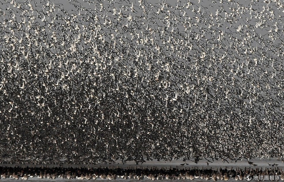 成千上萬隻水鳥飛離英國東南部諾福克郡(Norfolk)漲潮的河口,景象之壯觀令人屏息。