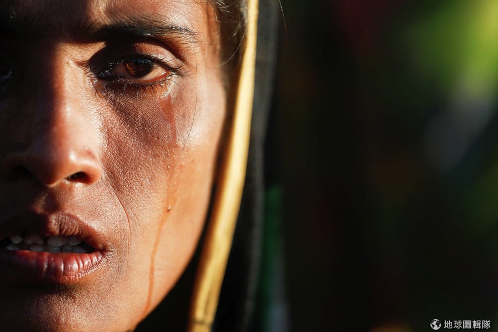在孟加拉緊鄰緬甸的科克斯巴扎爾縣(Cox's Bazar),今年 30歲的洛興雅難民哈特恩(Amina Khatun)回想起家園遭緬甸軍焚毀的過程,不禁悲從中來流下淚來,她為了活命和數千名同胞一起從緬甸逃到孟加拉避難。