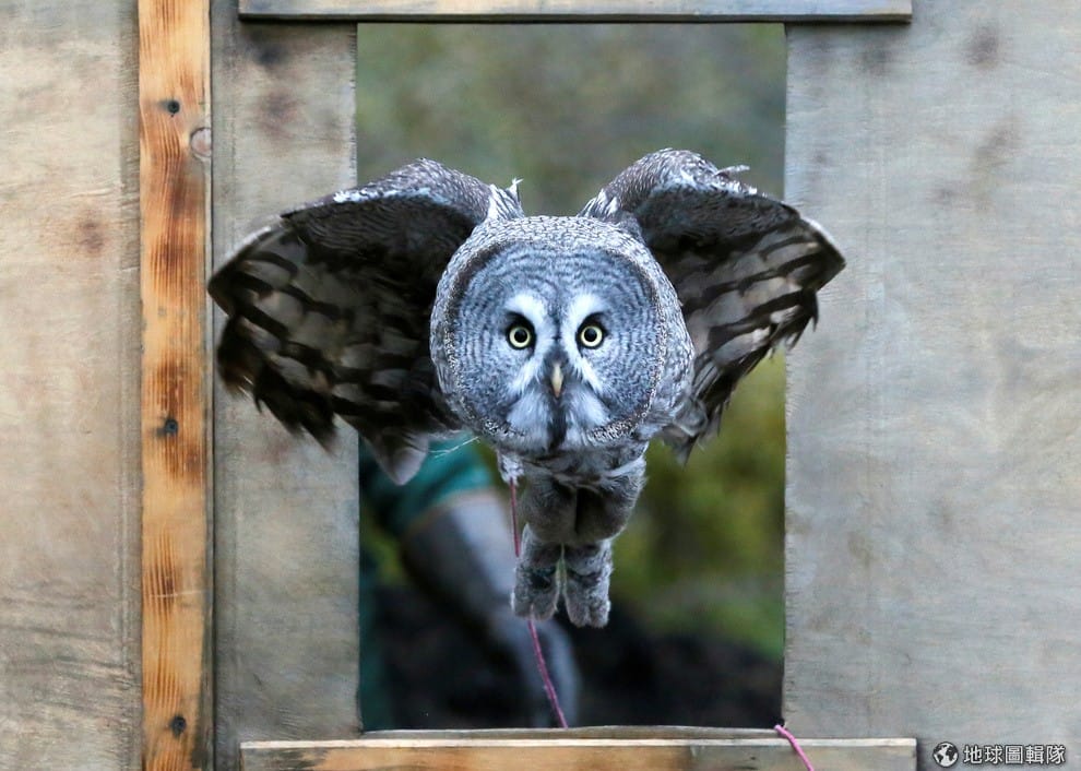 在羅伊孚露奇動物園(Royev Ruchey zoo),一隻 1.5歲大的烏林鴞正在接受飛行訓練,好讓園方未來可以把牠用在動物研究、教育、遊客互動等方面。