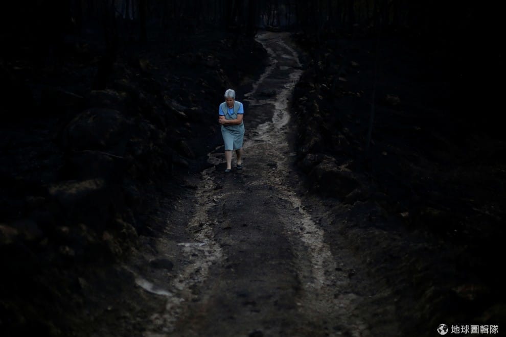葡萄牙北部明荷(Minho)地區塞爾韋拉新鎮(Vila Nova de Cerveira)在近日發生森林大火,攝影師捕捉下了一名在大火摧殘後的森林中行走的女子。