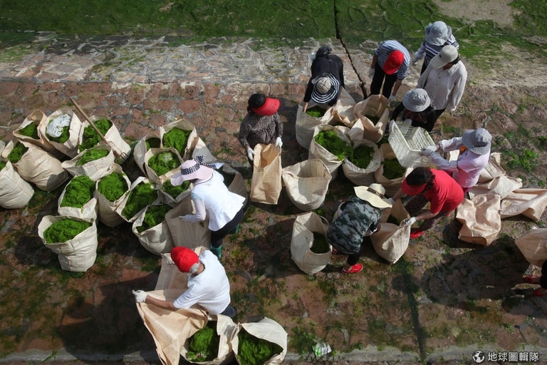 《新華網》2號報導,青島當地受到南風影響,飄移在黃海附近的「滸苔」開始大規模飄進海岸旁,青島的岸邊瞬間變成一片大草原。儘管海水浴場的人員努力用網攔截滸苔,但仍有大量的海藻堆積岸邊,讓青島的海水浴場變成了綠油油的青草地。