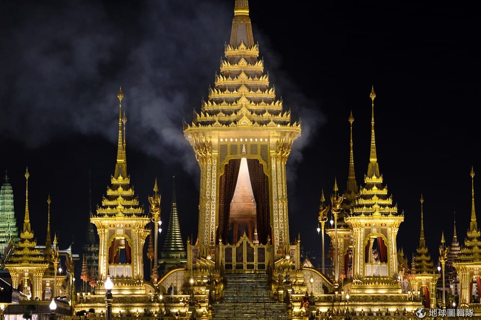 曼谷皇家火葬場冒出縷縷灰煙,先王蒲美蓬(Bhumibol Adulyadej)的國葬大典正在進行中。