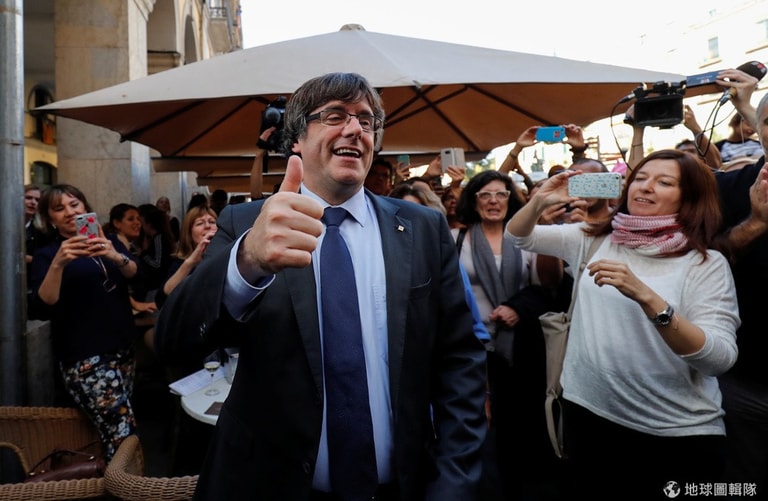 29號這天,被西班牙國會免職的前加泰隆尼亞自治區領導人普伊格蒙特(Carles Puigdemont),一派悠閒地坐在老家赫羅納(Girona)的酒吧裡吃午餐,順便跟民眾拍照,一切看來如常,不過等他一踏出酒吧,大批媒體一擁而上,閃光燈閃個不停,大家都在問他:「你知道你被免職了嗎?」