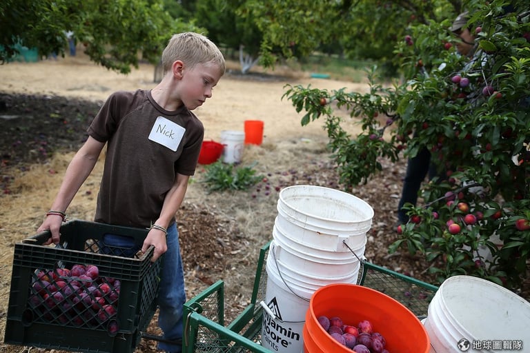 美國洛杉磯灣的收穫村莊(Village Harvest)專門幫小果園和家庭採收水果,再將果子捐給慈善團體,除了免費幫忙收成果實,收穫村莊機構還教導農家如何照顧果樹、如何採收水果還有保存食物。組織是由一群志工組成,每個月固定會協助採收15-20次,2012年一共採收了104,779公斤的水果。