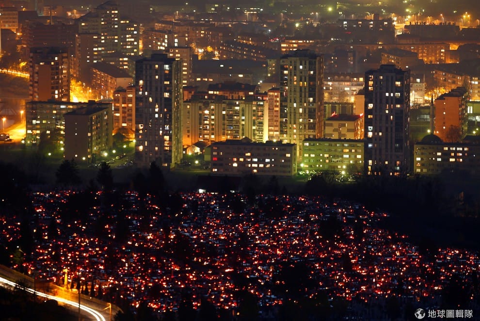 從位於中部澤尼察市(Zenica)的科克維克山(Crkvicko hill)往下望,可以看到閃著光芒的墓園和萬家燈火。
