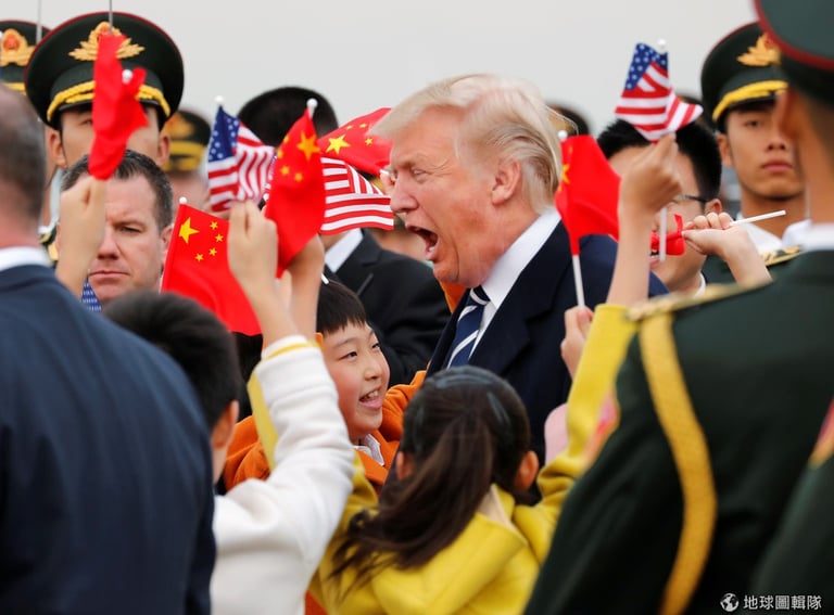 8號這天,美國總統川普(Donald Trump)和第一夫人梅蘭妮(Melania Trump)搭乘空軍一號抵達北京。他一下機就受到舉著中國和美國國旗的孩童歡迎。