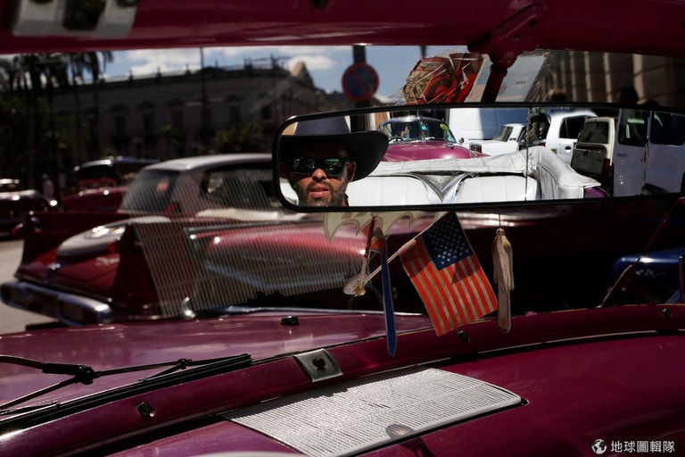 在首都哈瓦那街頭,一名開著經典老爺車的司機等待遊客上車,好帶他們一覽古巴風光。