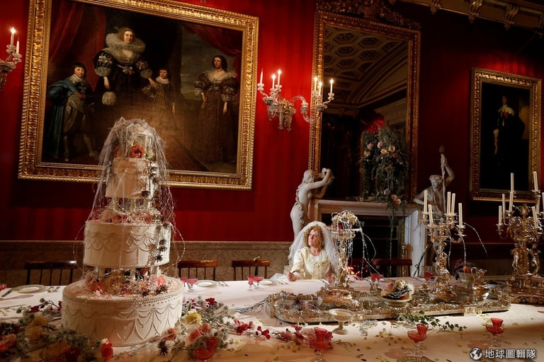 在中部的查茨沃斯莊園(Chatsworth House),每年鄰近聖誕佳節都會舉辦扮成英國寫實主義小說家狄更斯(Charles Dickens)筆下人物的活動,這一次科普蘭(Carole Copeland)穿上婚紗,扮成小說《遠大前程》(Great Expectations)裡的角色郝薇香小姐(Miss Havisham),將故事中的場景活靈活現地呈現在鏡頭前。