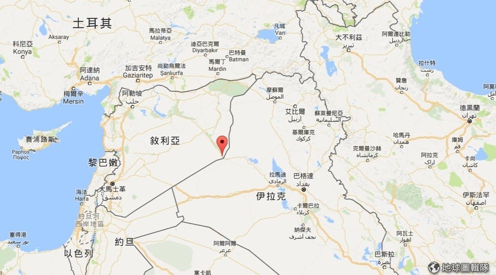 圖中紅色地標處就是位於敘利亞的阿布凱馬勒城,該城位於敘利亞東部幼發拉底河畔,和伊拉克毗鄰,是伊斯蘭國最後幾個在敘利亞的據點。