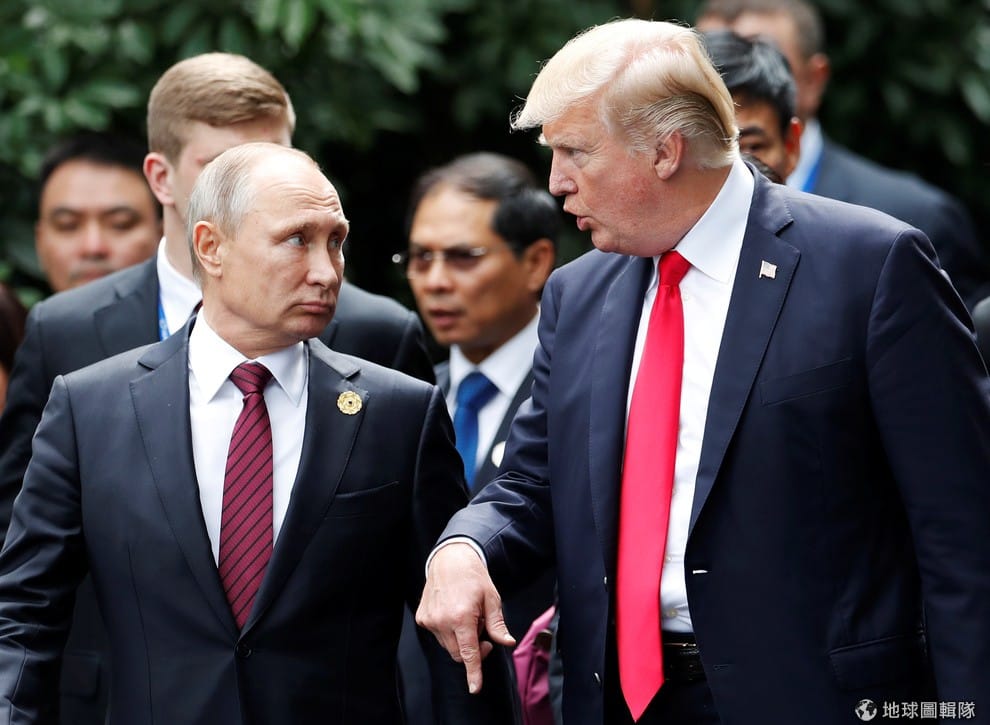 圖為本月 11日,俄國總統普亭和美國總統川普在越南峴港市亞太經合會(APEC)開會的照片。