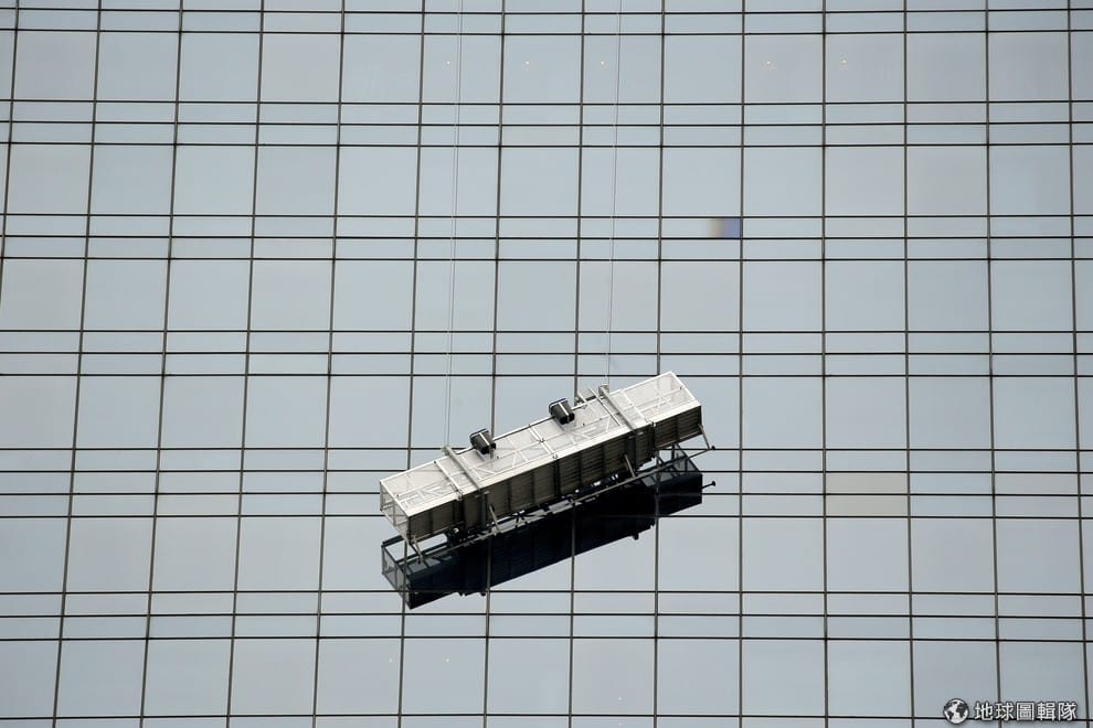 在紐約市曼哈頓的地標哥倫布圓環(Columbus Circle),一架洗外牆機械搖搖欲墜地掛在大樓上,所幸洗窗工人已經早一步被救出。