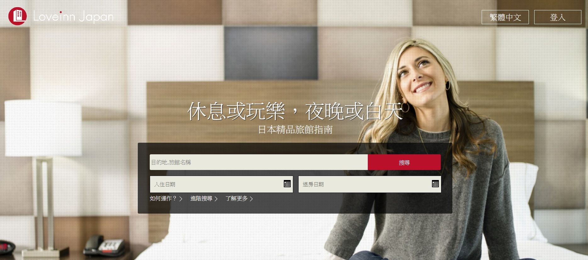 圖為專門提供日本精品旅館住宿的訂房網Loveinn,Loveinn的背後是由專門提供愛情賓館電子螢幕的資訊科技公司Almex經營。