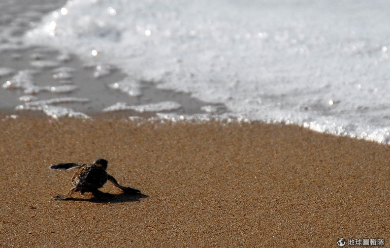 剛誕生的綠蠵龜寶寶,正努力地往印度洋移動,展開牠的新冒險!