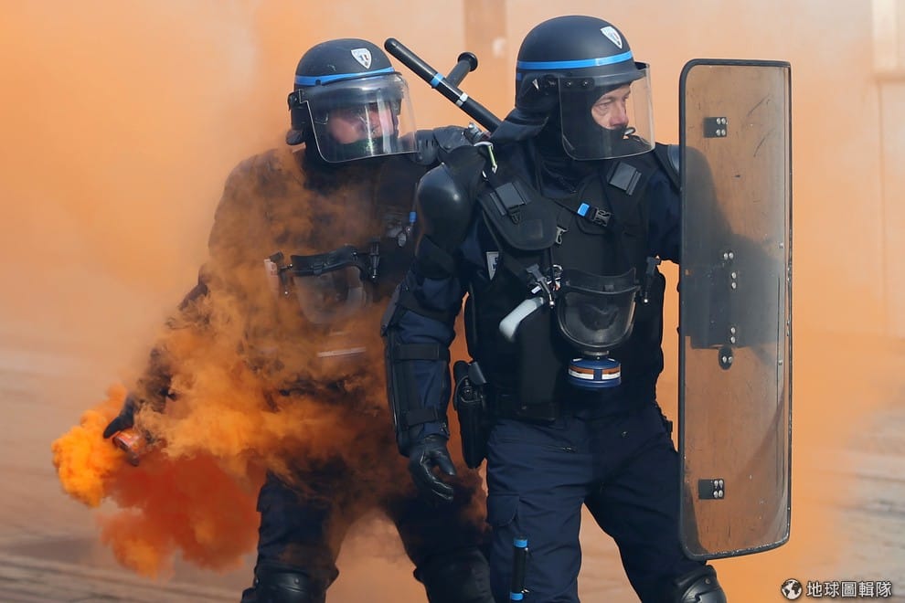 在一場抗議勞工政策改革的示威活動上,政府保安警察(CRS)正準備驅離示威者。