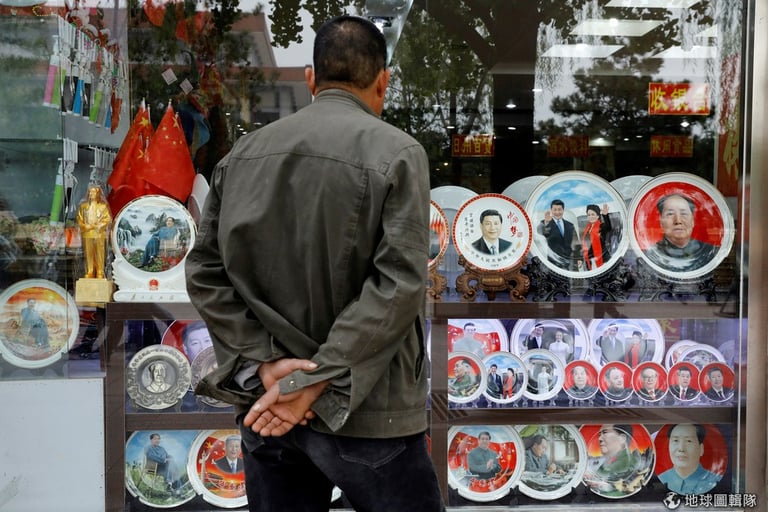 在北京的一家紀念品店內,擺著許多印有歷屆中國領導人肖像的紀念盤。