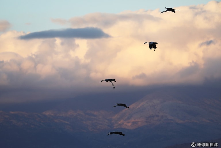 一群鶴飛過護拉山谷國家公園,準備遷徙到適合過冬的地方。