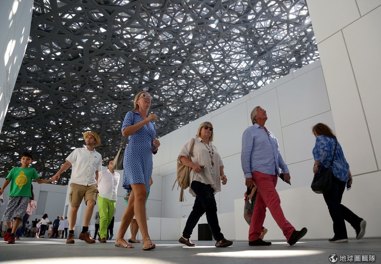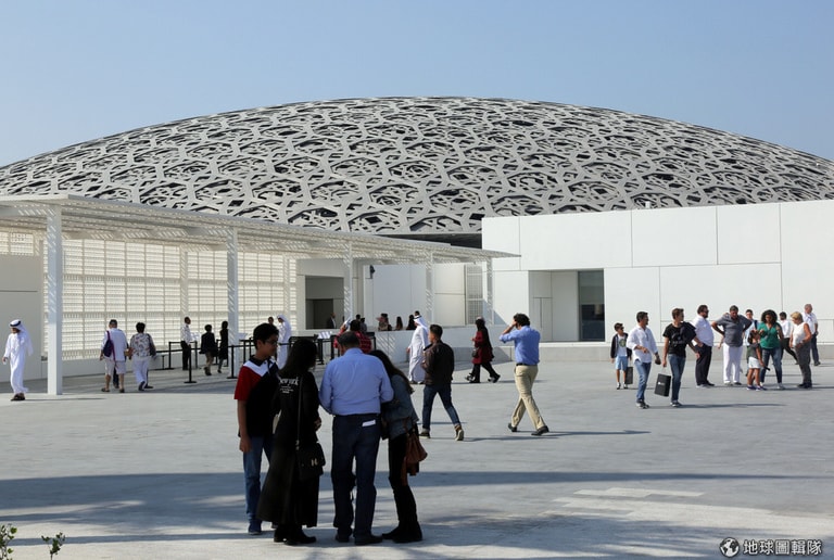 上個月,耗時十年建成的阿布達比羅浮宮終於正式揭幕。位於沙迪維島、佔地 2萬4,000平方公尺的阿布達比羅浮宮,是法國羅浮宮第一個在海外開設的分館,整體建築由法國建築師努維爾(Jean Nouvel)一手設計,抬眼就能看到幾何八角形格子組成的白色天頂,融入了中東的文化特色。
