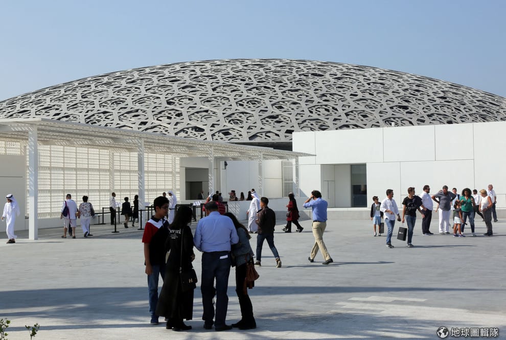 而以白色系為主的阿布達比羅浮宮,更在外廊引入來自波斯灣的湛藍海水,帶給觀者濃濃的現代氛圍。最後,阿布達比投資超過 10億美金(折台幣約 296.54億元)在建造這棟博物館上。