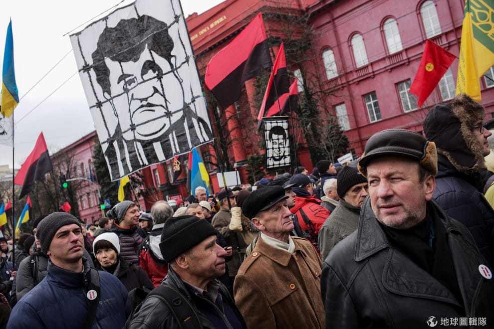 在烏克蘭首都基輔(Kiev),不滿執政政府的人們走上街頭高聲抗議。