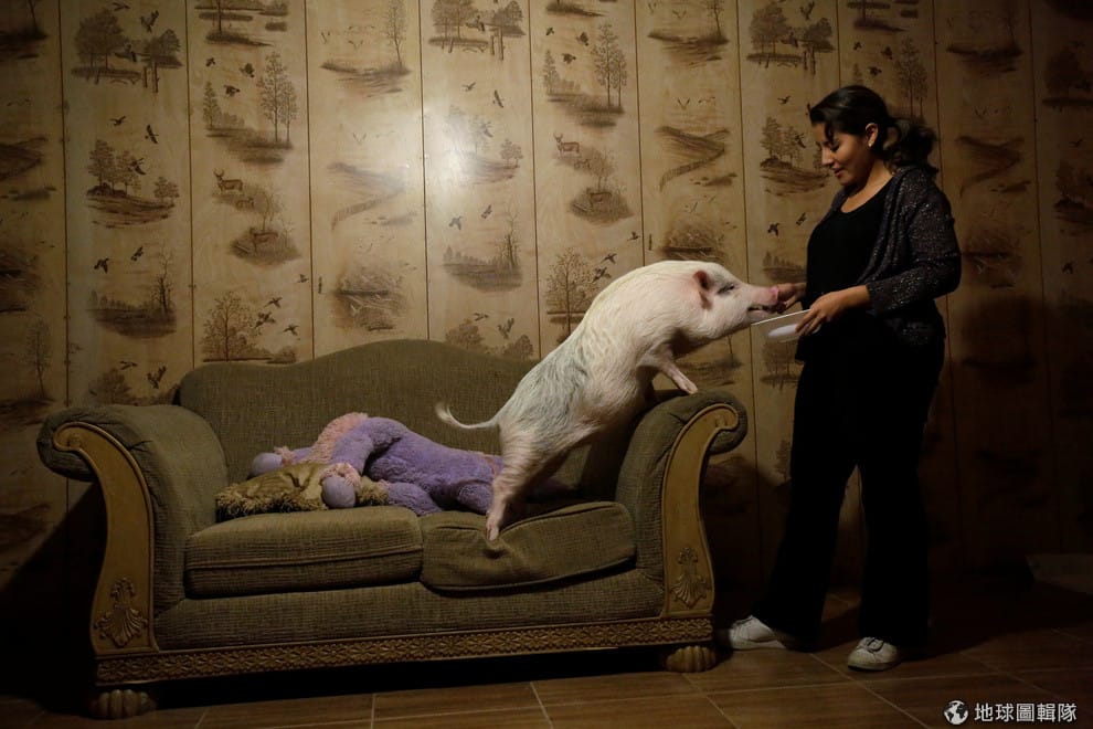 在華瑞茲城(ciudad juarez),門多薩(Yissel Mendoza)向記者展示了自己飼養的寵物豬「巴魯」(Balu)。