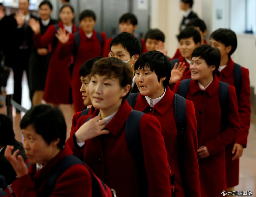 來自北韓的女子足球隊抵達羽田機場,準備參加接下來的 2017年東亞足球錦標賽。