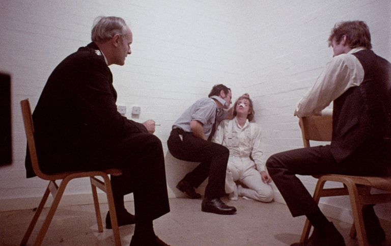 下半段則是對人性自由意志提出質疑,如同片名來自英國俚語queer as a clockwork orange(像上了發條的橘子一樣奇怪),有機體的橘子被裝上機械發條,象徵一種荒謬扭曲的狀態,用以暗喻國家機器操控個人意志時,驅動力量來自一雙權力結構下的隱形之手。