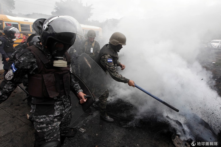 這群示威者是反對黨自由黨總統候選人納斯拉勒(Salvador Nasralla)的支持者,他們正在抗議 11月底出爐的總統大選是舞弊後的結果。當時反對黨候選人納斯魯拉指控,現任總統耶南德茲(Juan Orlando Hernández)以電腦當機、頒佈宵禁令等方式舞弊,讓本來票數領先的反對黨在結果公布的時候反而落敗。