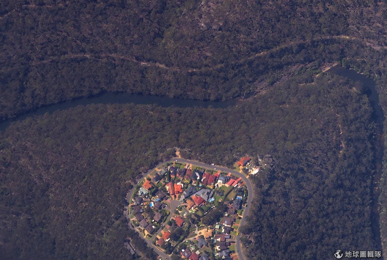 在城市雪梨(Sydney)的西南方,攝影師把被叢林和河流包裹住的住家納入鏡頭裡。