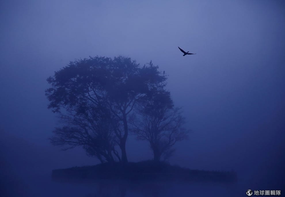 在首都加德滿都,一隻飛鳥在晨霧中飛離先前棲息的樹木,這一幕被鏡頭捕捉了下來。