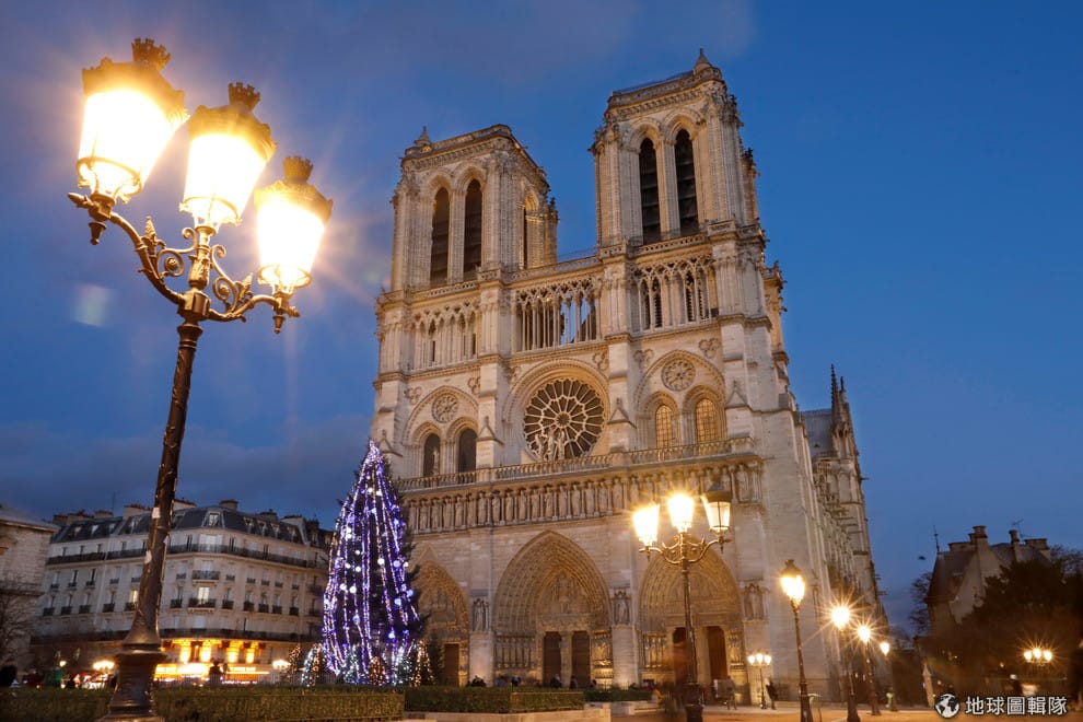 為了迎接聖誕節的到來,巴黎聖母院在門前架起了巨型聖誕樹,讓當地過節的氣氛越來越濃厚。