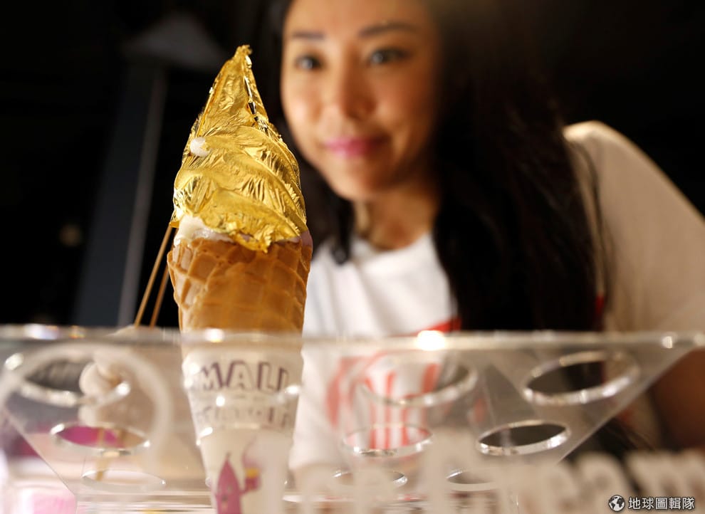 首圖故事:冰淇淋店老闆小心翼翼地把金箔貼在霜淇淋上......